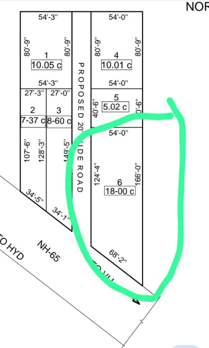 Road Width: NH65 South Facing 200 feet, West 20 feet