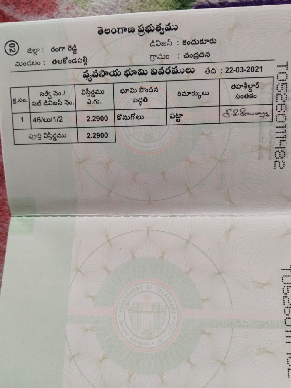 మా యొక్క స్వంత పట్ట భూమి 2 ఎకరాల 29 గుంటల (2 acres 29 Guntas) భూమి అమ్మకానికి కలదు.