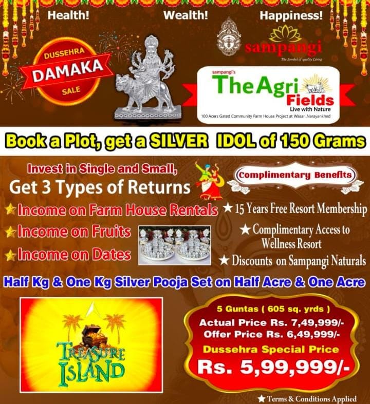 Location- Near NarayanaKed , NIMZ Telangana, Rs6.5 lacs per 5 guntas