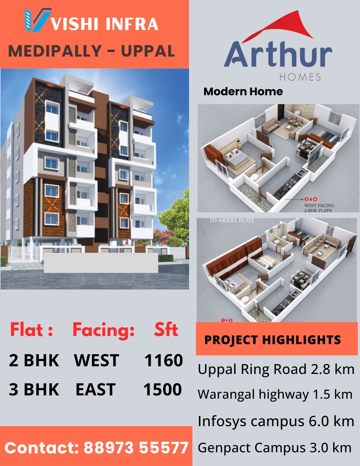 3BHK Flats for Sale at Medipally, Uppal, Hyderabad