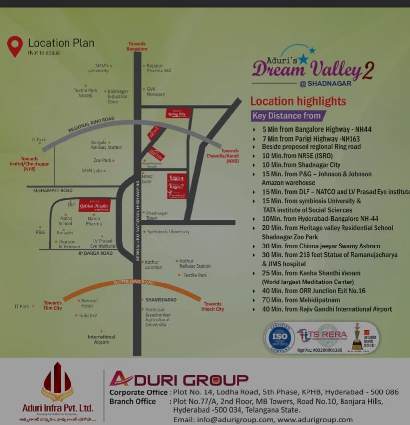 ADURI'S ICONIC 4 DREAM VALLEY 2 BOGA SRINIVAS EMail Id: bhogasrinu@gmail.com +916301529050 +918523073540 Property Code: SR-0003 PIN Code: BrickZRealtors Call for pricing LOCATION HIGHLIGHTSBeside Proposed Regional Ring Road7 Min. From Shadnagar City10 Min. From DLF- NATCO & LV Prasad EYE Institute5 Min. From Hyderabad - Bangalore NH-4425 Min. From 216 Feet Statue Of Ramanjuacharya35 Min. From ORR Junction Exit No:167 Min. From NRSC (ISRO)10 Min. From P&G - Jhonson & Jhonson Amazon Warehouse10 Min. From Symbiosis University & TATA Institute Of Social Science12 Min. From Heritage Valley Residential School25 Min. From Chinna Jeeyar Swamy Ashram35 Min. From Rajiv Gandhi International Airport Related Properties List your Property with BrickZ Realtors WhatsApp us to know more: +91-8790624227 +91-628-199-4649 ₹ 1,180.00 Villa Open Plots In Shankarpally at discounted price just 18000-Hyderabad Open Plot-Shankarpally-Hyderabad Authorized Consultant: Swamy : +91 95507 37607 ₹ 18,000.00 Add to cart Custom wishlist OK Add to wishlist Open Plot-POCHAMPALLY-Hyderabad Open Plot-POCHAMPALLY-Hyderabad Authorized Consultant: K.Rao : 9700002006 ₹ 6,599.00 Add to cart Custom wishlist OK Add to wishlist Open Plot for sale in Medipally-Hyderabad Open Plot for sale in Medipally-Hyderabad Authorized Consultant : Mahankali : +91-903-2870-207 ₹ 55,000.00 Add to cart Custom wishlist OK Add to wishlist Independent House for sale, Bachupally ,Hyderabad Independent House for sale, Bachupally ,Hyderabad Authorized Consultant Suresh : +91 95501 36248 ₹ 4,00,00,000.00 Add to cart Custom wishlist OK Add to wishlist Apartment flat for sale - Nallagandla-Hyderabad Apartment flat for sale - Nallagandla-Hyderabad Authorized Consultant : Dhana Lakshmi : +91 95021 79931 ₹ 2,30,00,000.00 Add to cart Custom wishlist OK Add to wishlist Commercial property for sale @ Land cost - Allwyn Colony-Hyderabad Commercial property for sale @ Land cost - Allwyn Colony-Hyderabad Authorized Consultant : Vasu +91 93479 87446 ₹ 0.00 Add to cart Custom wishlist OK Add to wishlist 2.29 Acres of Land for sale at Talakonda Palli- Hyderabad 2.29 Acres of Land for sale at Talakonda Palli- Hyderabad Direct Owner : Venkatesh : +91-9553570154 ₹ 1,10,00,000.00 Add to cart Custom wishlist OK Add to wishlist